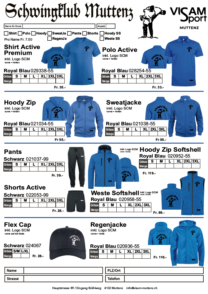 Hier findet ihr die offizielle Vereinskleidung des SK Muttenz.